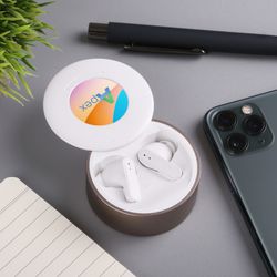 Tags: Headphone, Earbud, Charger, QI Charger, Wireless Charger, Electronic, Tech, Music, Podcast, Radio, Commute, Study, Office, Phone, Accessories, Ear, Modern, School, Incentive, Gift, Portable, Quality, High-End